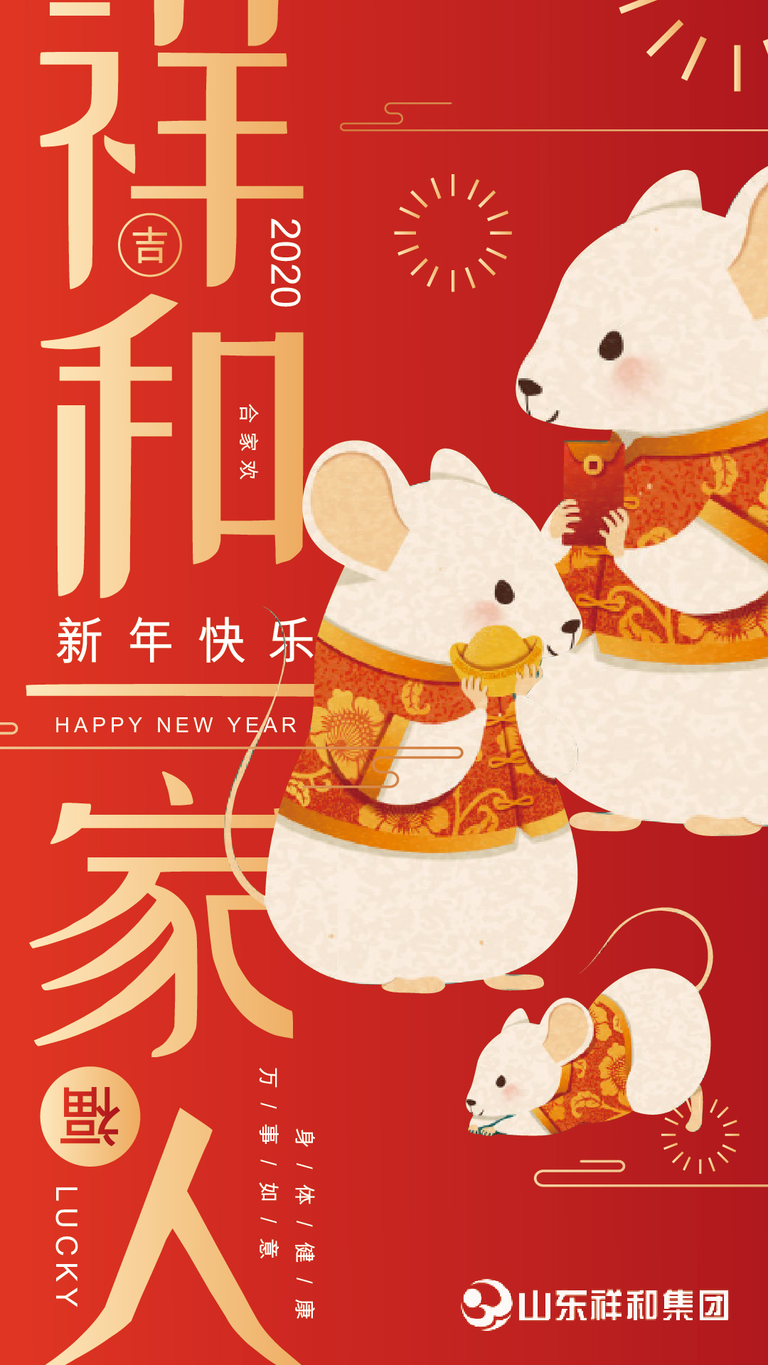 值庚子鼠年春節(jié)到來之際,山東祥和集團(tuán)感謝您一直以來的信任與支持,在此向廣大干部職工、家屬、退休老同志和所有關(guān)心支持祥和事業(yè)發(fā)展的社會各級領(lǐng)導(dǎo)、各界朋友、合作伙伴致以誠摯的問候和新春的祝福,祝您鼠年安康,祥和如意。
