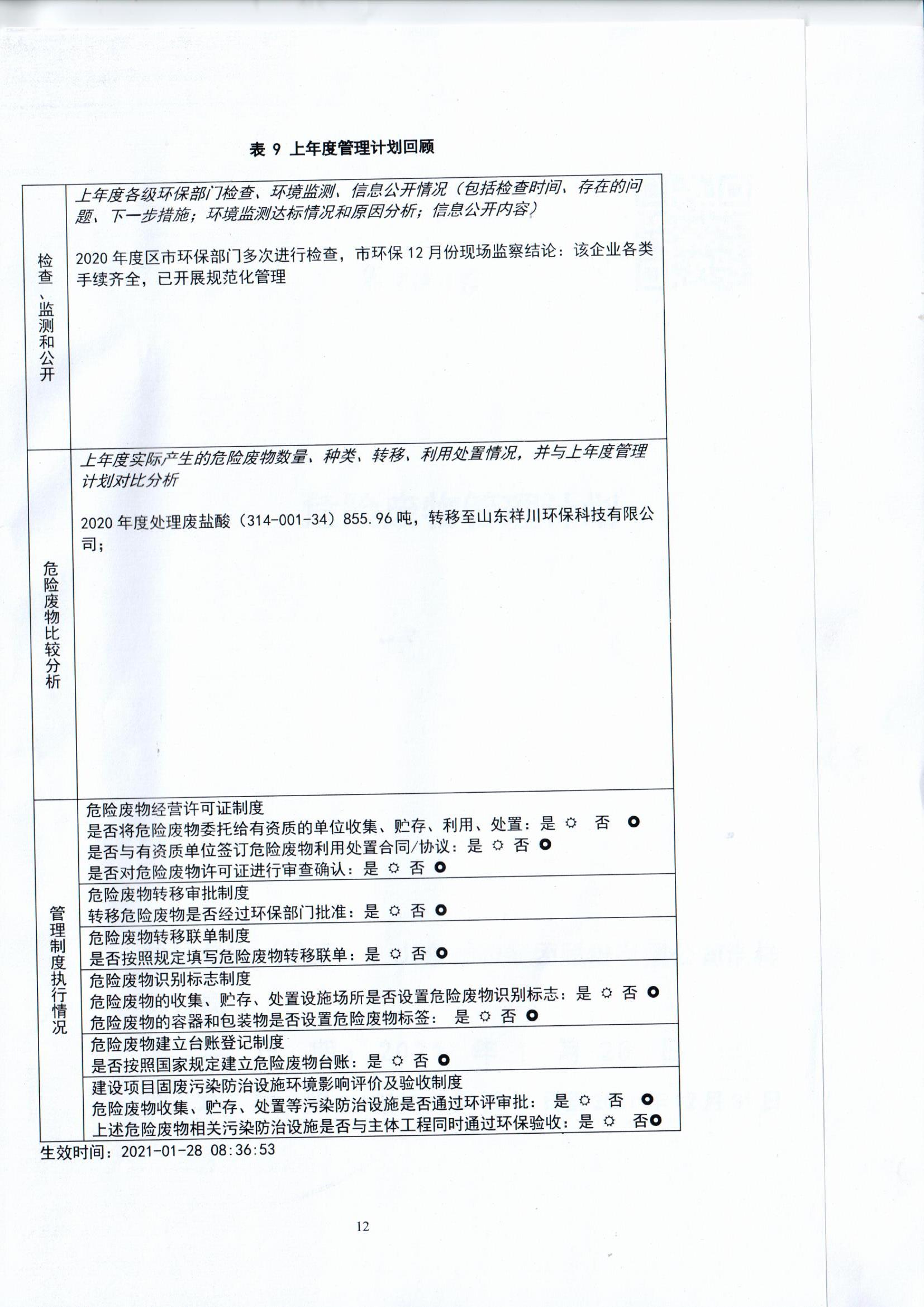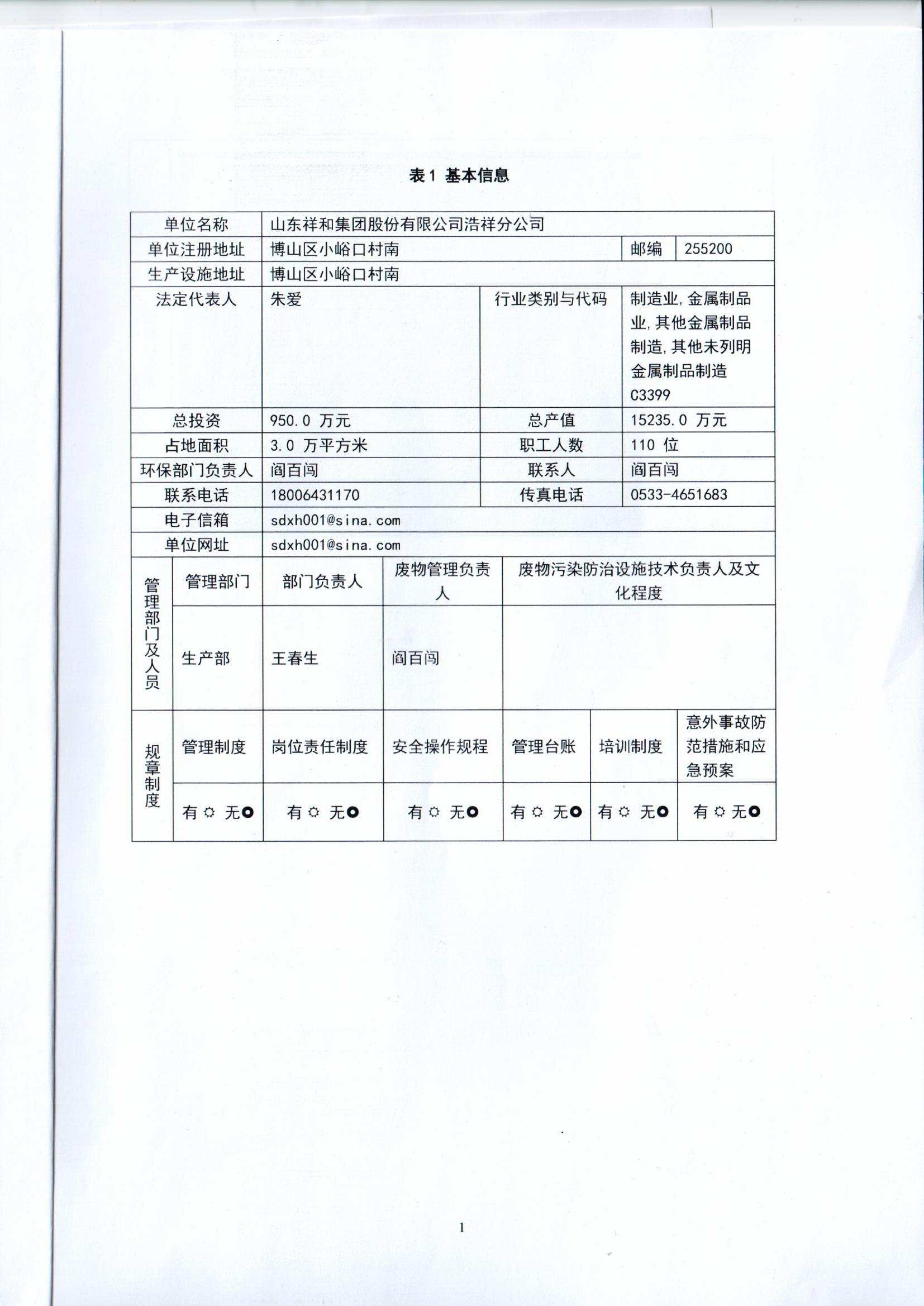 山東祥和集團浩祥分公司2021年度危險廢物管理信息公開