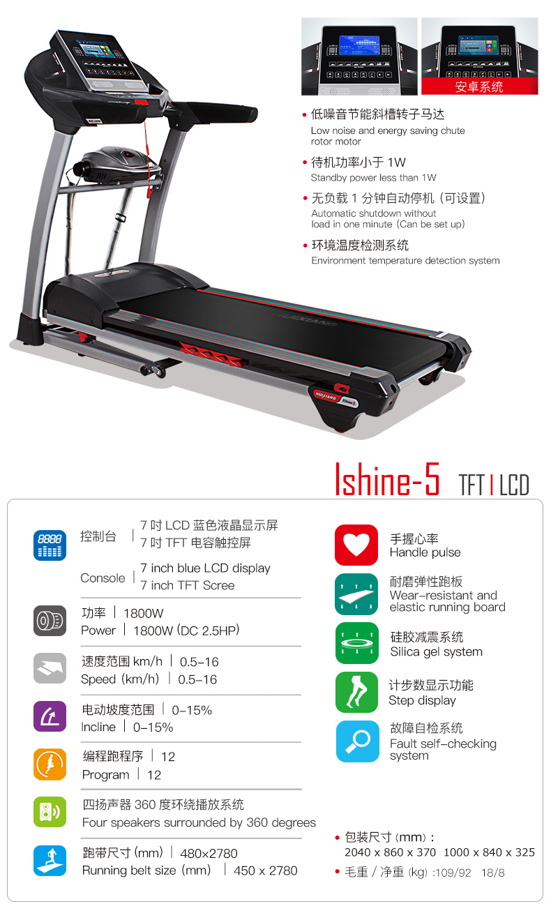 按鍵設(shè)置:5個(gè)速度直選按鍵; 5個(gè)坡度直選按鍵